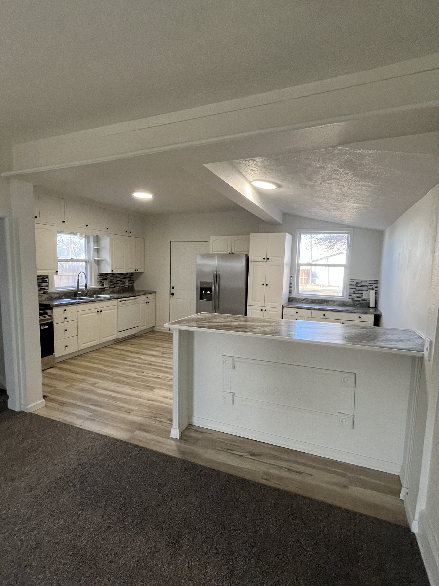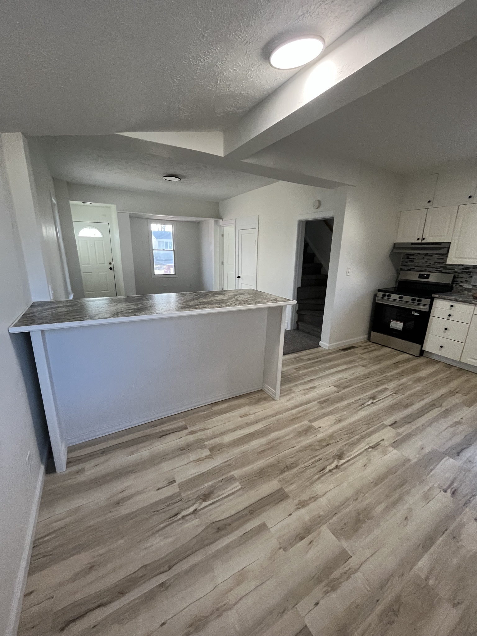 The kitchen stands out with an island, ample workspace, and included appliances. It flows naturally into the living area, supporting comfortable everyday living.